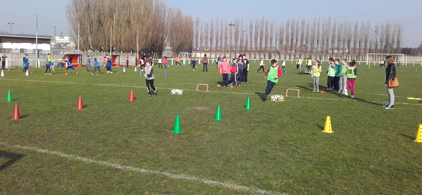 Sous un soleil printanier, 120 enfants et les équipes enseignantes de la ville ont participé ce jeudi 16 Mars 2017 à l’opération « Car Foot ».