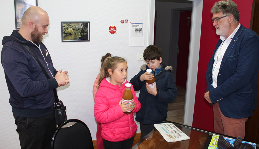 Cent vingt kilos de pommes ont fourni cinquante deux bouteilles de jus de pommes pour le plus grand plaisir des enfants des Accueils de Loisirs.