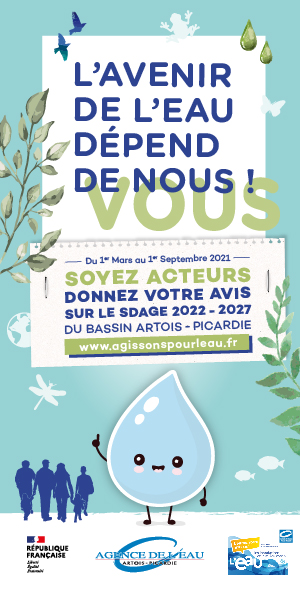 L’avenir de l’eau vous intéresse ? Du 1er mars au 1er septembre 2021, l’Agence de l’Eau Artois-Picardie lance sa grande consultation au public dans le cadre de son projet de Schéma Directeur d’Aménagement et de Gestion des Eaux (SDAGE) 2022-2027. Vous êtes invités à donner votre avis sur la gestion des eaux et des risques d’inondation dans les Hauts-de-France pour les six prochaines années à venir. Tout au long du projet, des actions pour mieux comprendre les enjeux de l’eau seront organisées. Chaque avis compte, alors faites entendre votre voix !