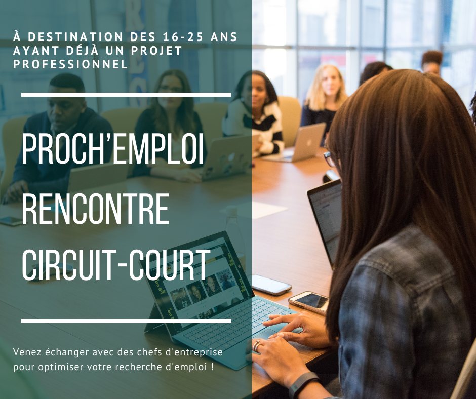 Le but de cette rencontre ? Faire échanger des jeunes âgés de 16 à 25 ans possédant un projet professionnel déjà défini et des chefs d'entreprises locales. Proch'emploi permet aux jeunes demandeurs d'emploi, durant une rencontre informelle et conviviale, d'optimiser leurs techniques de recherche d’emploi et de leur donner l’opportunité de rencontrer le monde de l’entreprise en se faisant connaître auprès d’un réseau.